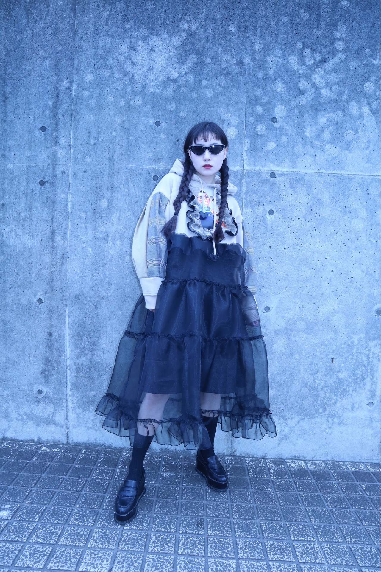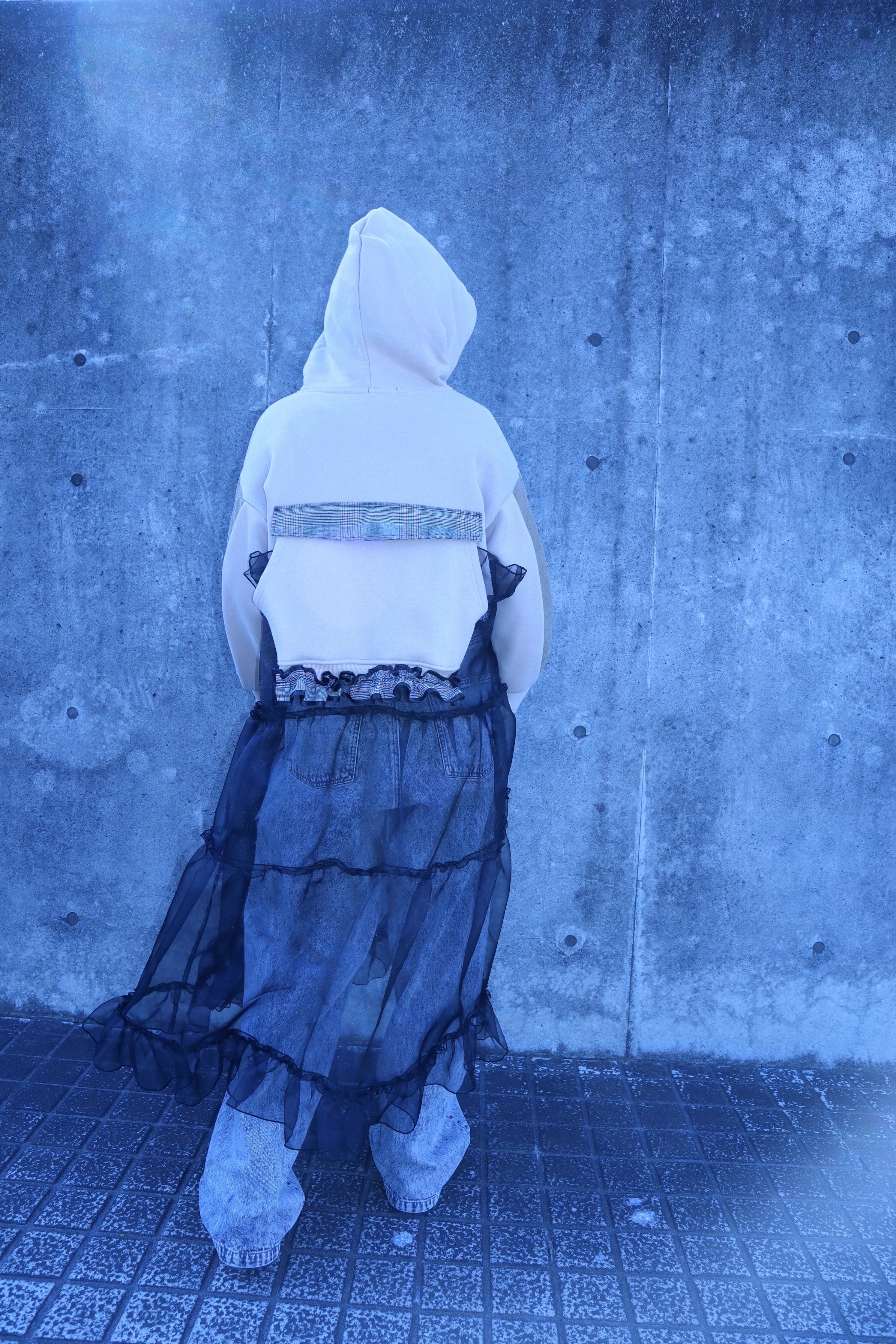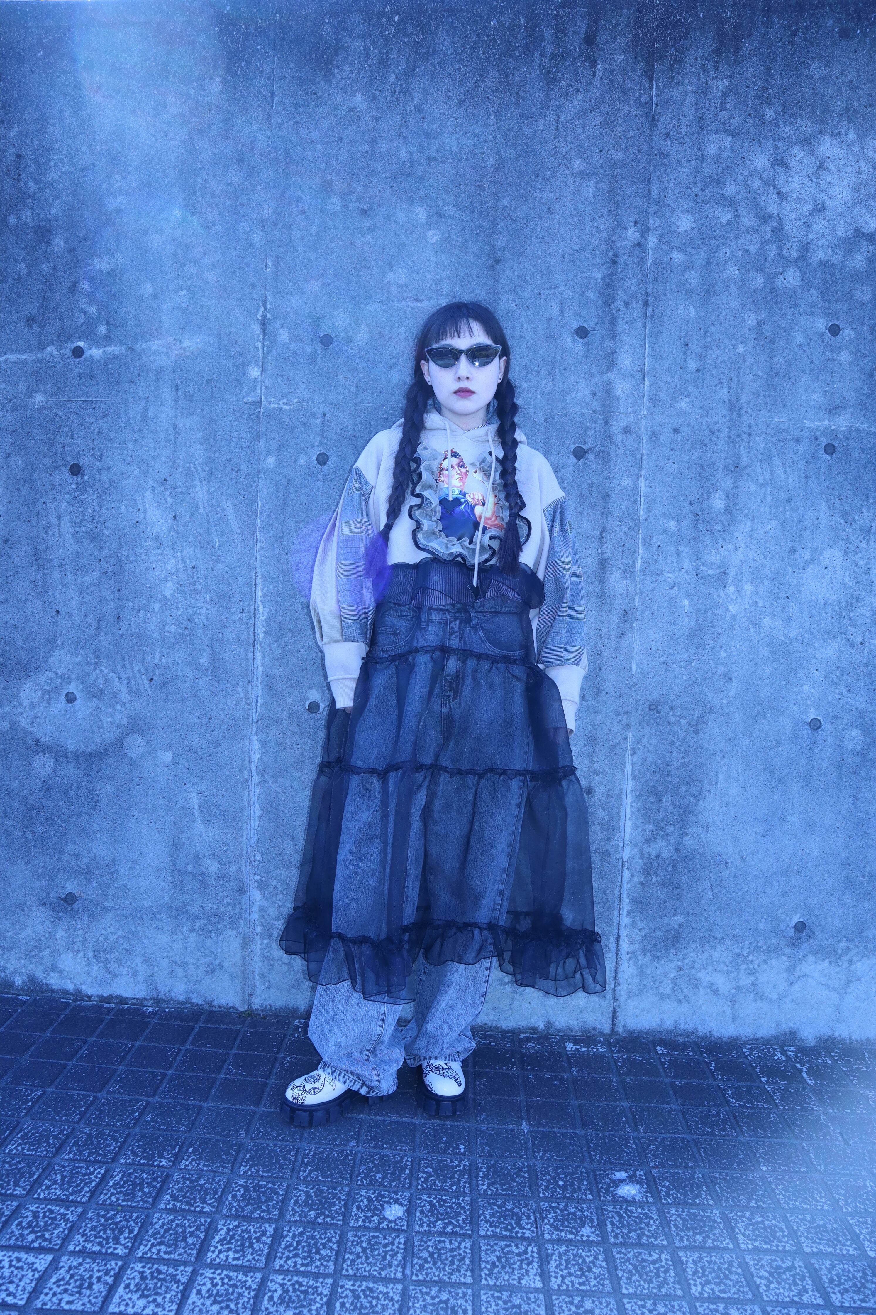 下の部分はオーガンジー素材をたっぷりと使い、ボリュームのあるデザインで、仕上げはメローを施し、他にはない可愛くカッコいいアイテムに仕上がりました。
