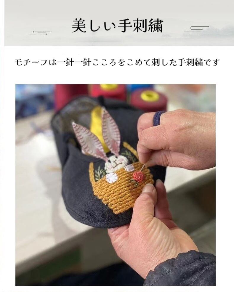 モチーフは一針一針こころをこめて刺した手刺繍です。手でしか生み出せないものがある。