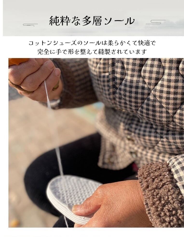 コットンシューズの多層ソールは柔らかくて快適で、完全に手で形を整えて縫製されています。